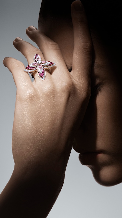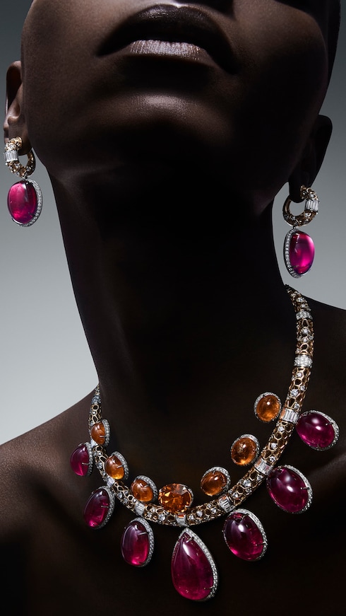 El segundo acto, Life, desvela un universo complejo y sofisticado, con una fuerza vital que despierta la creación y lo gráfico que da paso a lo orgánico, culminando en piezas espectaculares. Diálogo magistral entre diamantes y piedras de color, estas piezas celebran un deslumbrante juego de texturas.