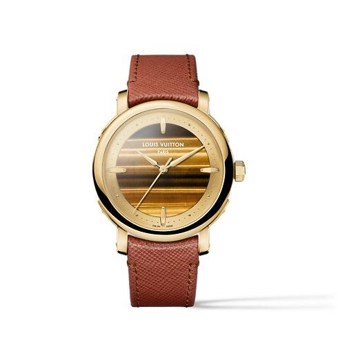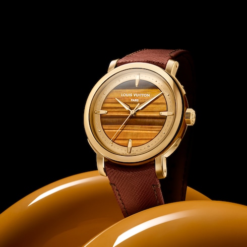 Louis Vuitton Escale Ojo de Tigre, que marca el primer uso del oro amarillo en la colección, estrena una nueva expresión que aporta mayor profundidad a la piedra. El ojo de tigre, cuidadosamente seleccionado, forma una superficie continua a lo largo de la esfera y la caja central, con sus cálidas estrías tonales calibradas para irradiar un contraste armonioso y una gran intensidad de color.