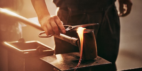Para magnificar el diseño artesanal de Marc Newson, Louis Vuitton recurrió a la cristalería Baccarat, que cuenta con 250 años de historia y experiencia. Inspirándose en las antiguas técnicas de soplado de vidrio, los maestros vidrieros fabricaron el frasco utilizando el cristal más precioso. El tapón de cristal negro presenta el logotipo de LV Circle en esmalte dorado pintado a mano, añadiendo un toque exquisito. El frasco descansa majestuosamente sobre una base de cuero natural fabricada en los talleres de Louis Vuitton, cuya delicada y sensible piel adquiere una pátina única de tono ámbar.