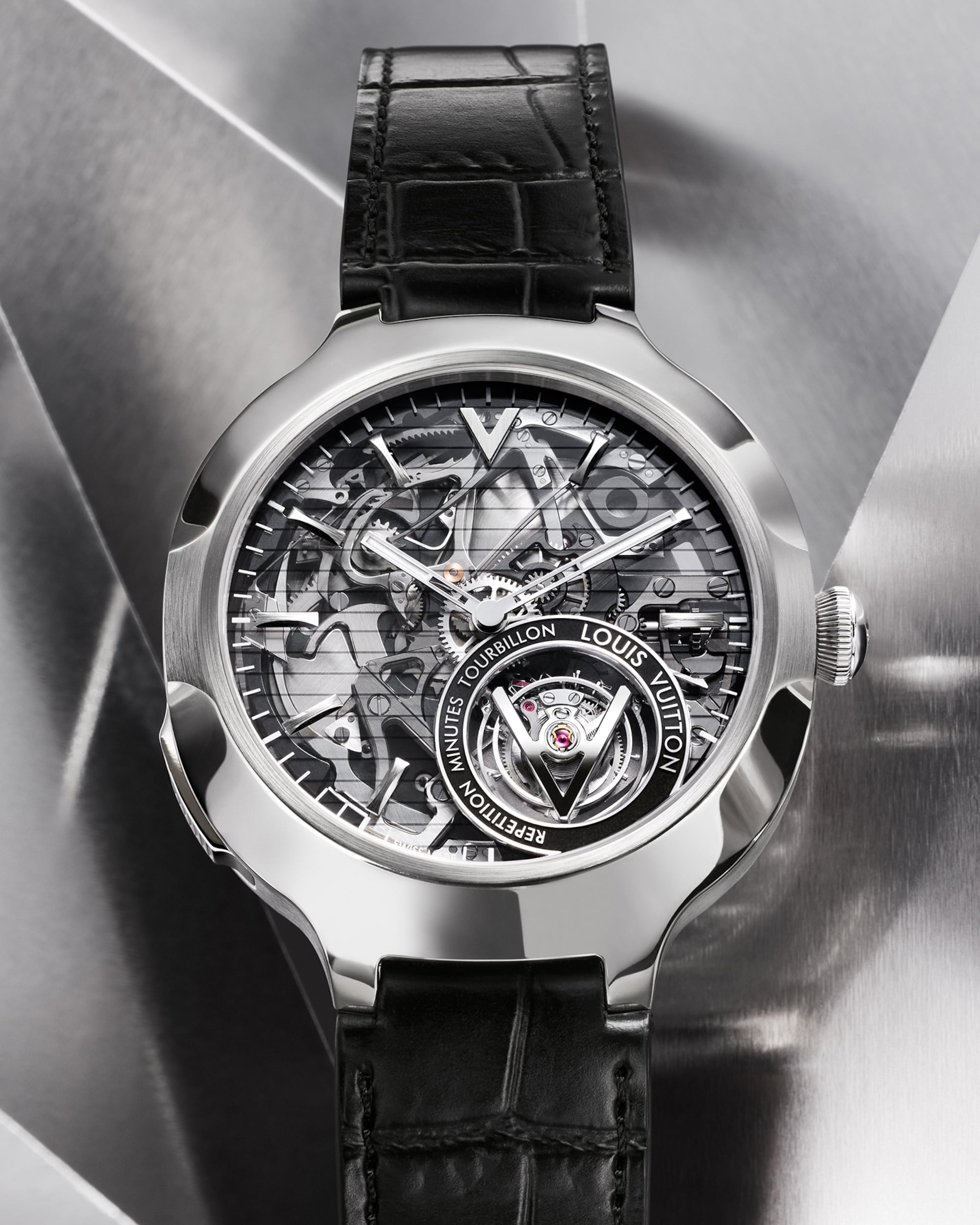 Experimente la visualización del tiempo reimaginada con el intrincado movimiento de Repetición de Minutos de La Fabrique du Temps Louis Vuitton. Logrado con maestría por unos pocos, cada momento se despliega tanto a la vista como al oído, realzado por los profundos y resonantes tonos de los gongs de la Catedral.