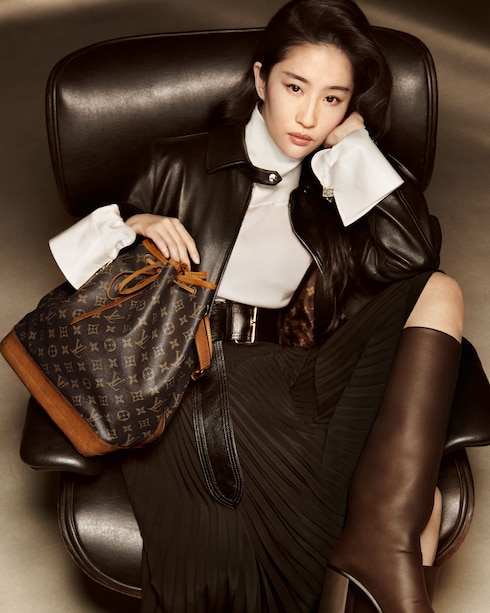 La embajadora de la casa, Liu Yifei, captura la efervescencia de la emblemática Noé, diseñada originalmente por Gaston-Louis Vuitton en 1932 para transportar champán de alta calidad, una encarnación de la celebración alegre.