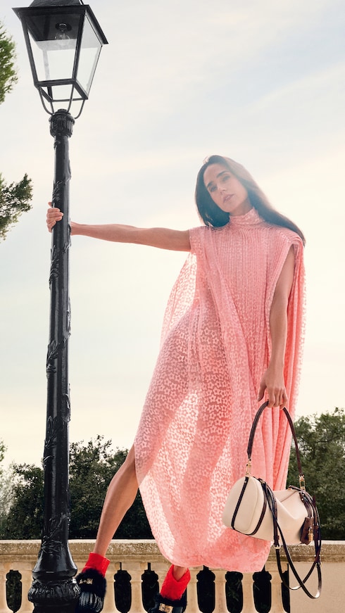 La colección Mujer Primavera-Verano 2026 de Nicolas Ghesquière, una oda al arte de vivir, presenta un vestuario fluido y elegante, encarnado por la embajadora de la Maison, Jennifer Connelly.