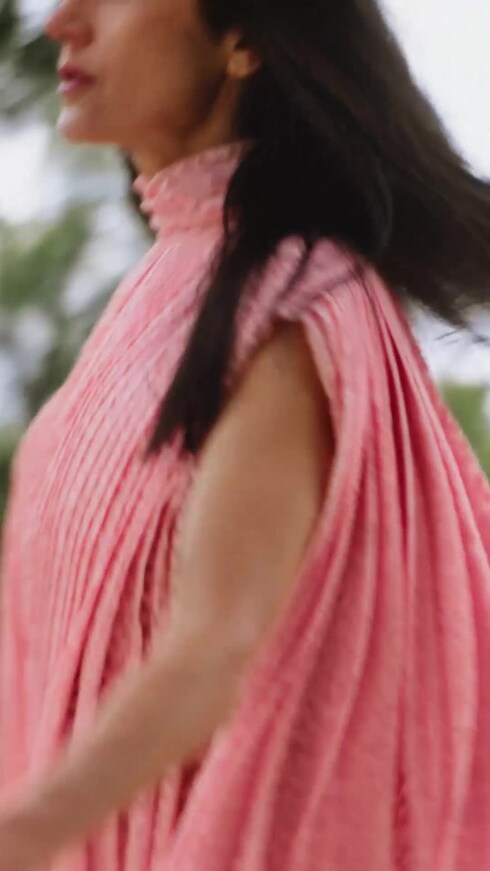 Tonos delicados y materiales sofisticados se combinan en siluetas drapeadas junto con reinterpretaciones de piezas icónicas, celebrando la libertad estilística y la comodidad serena.