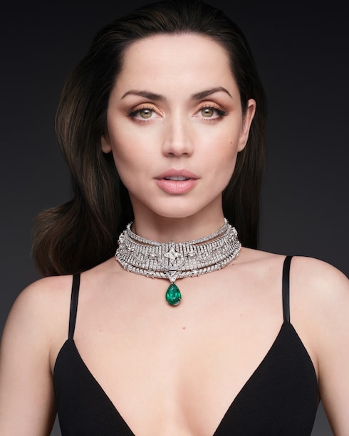 Apogée marca una cumbre deslumbrante donde la maestría técnica se une a la emoción, culminando en una exquisita pieza central de 30,75 quilates de esmeralda brasileña en gota y un excepcional diamante en talla D FL LV Monogram Star de 10,56 quilates, que encarna el ascenso a la máxima excelencia. Las asas articuladas, que emulan la elegancia funcional de los baúles Louis Vuitton, y los detalles en forma de cuerda revelan un poderoso equilibrio de feminidad, determinación y delicadeza.