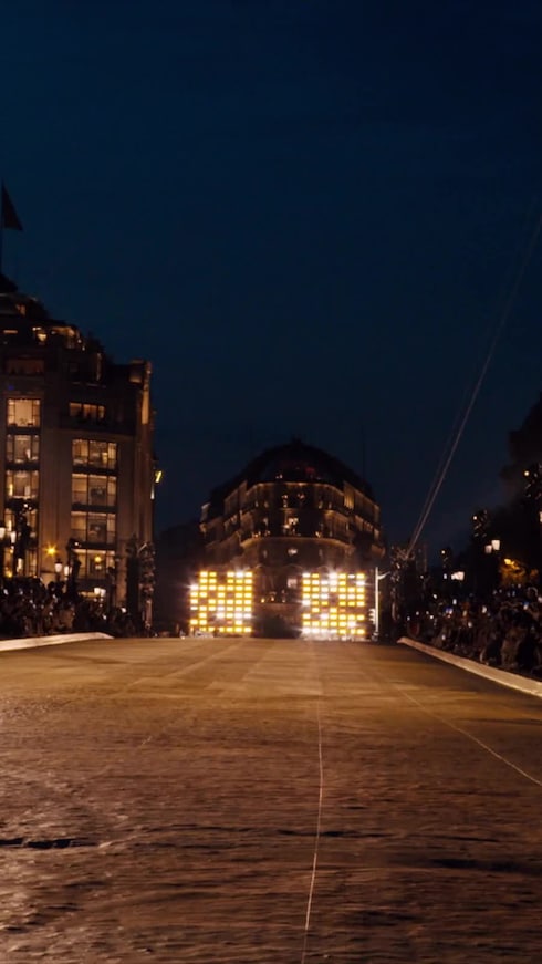Como faro simbólico de Louis Vuitton, el puente Pont Neuf de París se transforma en un escenario iluminado, adornado con el emblemático motivo Damier.