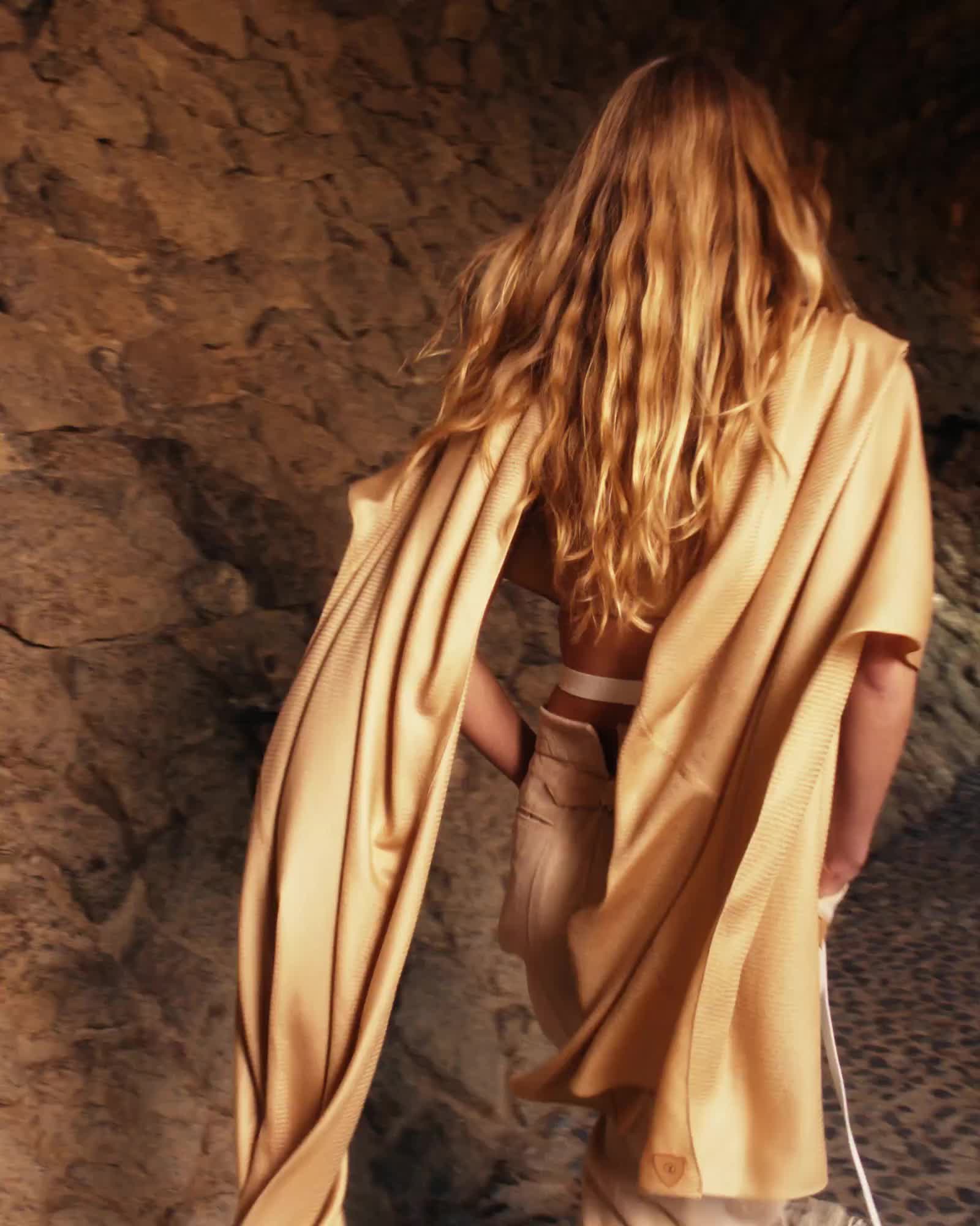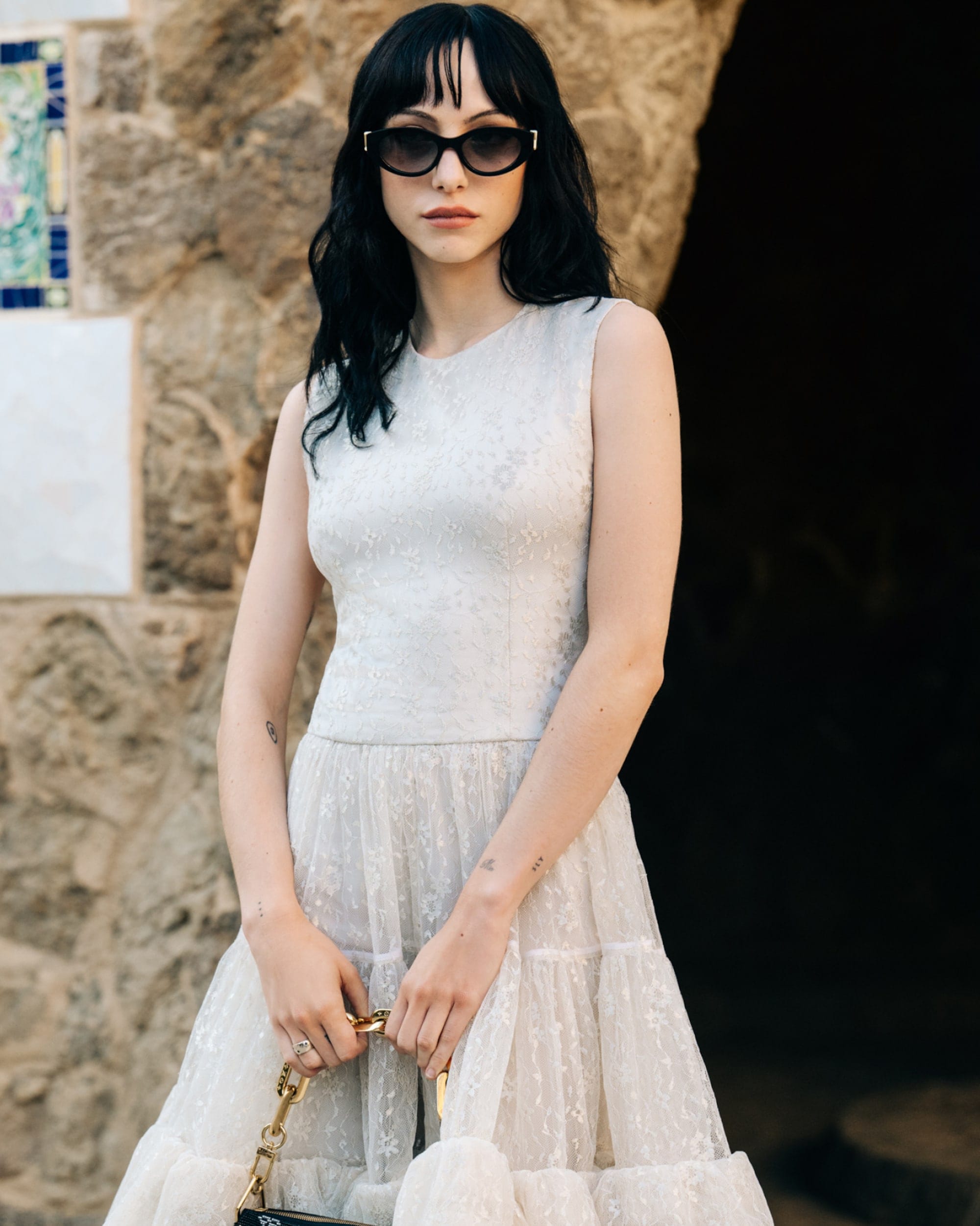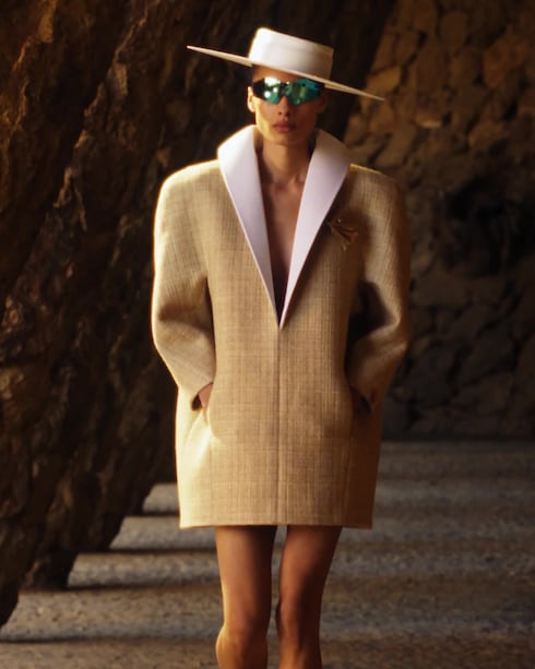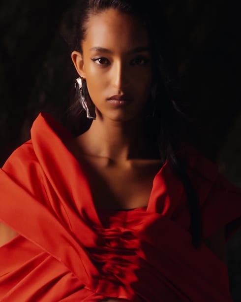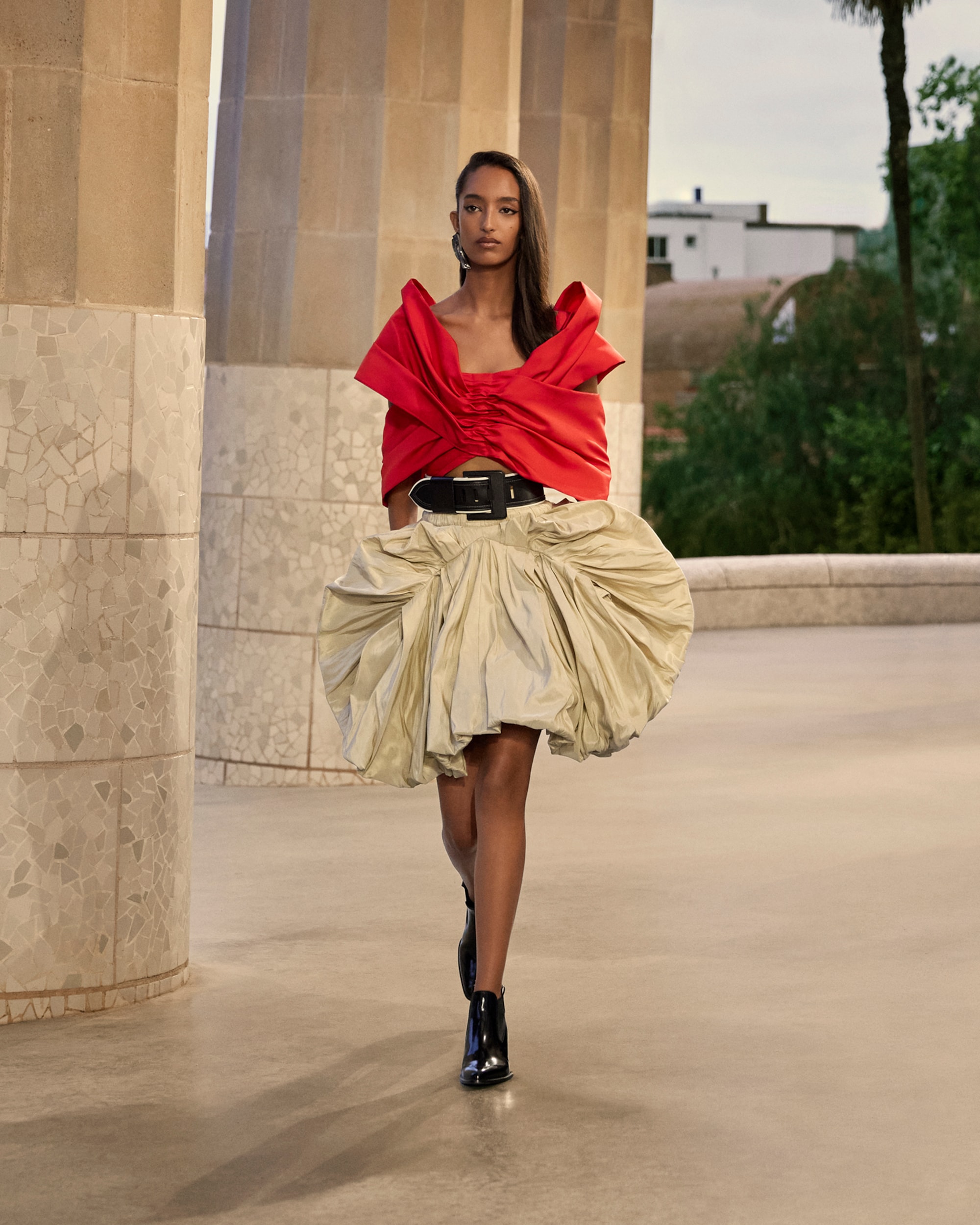 Con volúmenes arquitectónicos y drapeados fluidos, la colección intriga por su elegante exploración de los contrastes. Las creaciones de ready to wear, las bolsas y los accesorios, salpicados de acentos españoles, se adornan con bordados, flecos y volantes, creando nuevas firmas de inspiración viajera.