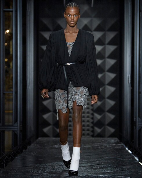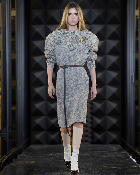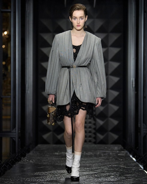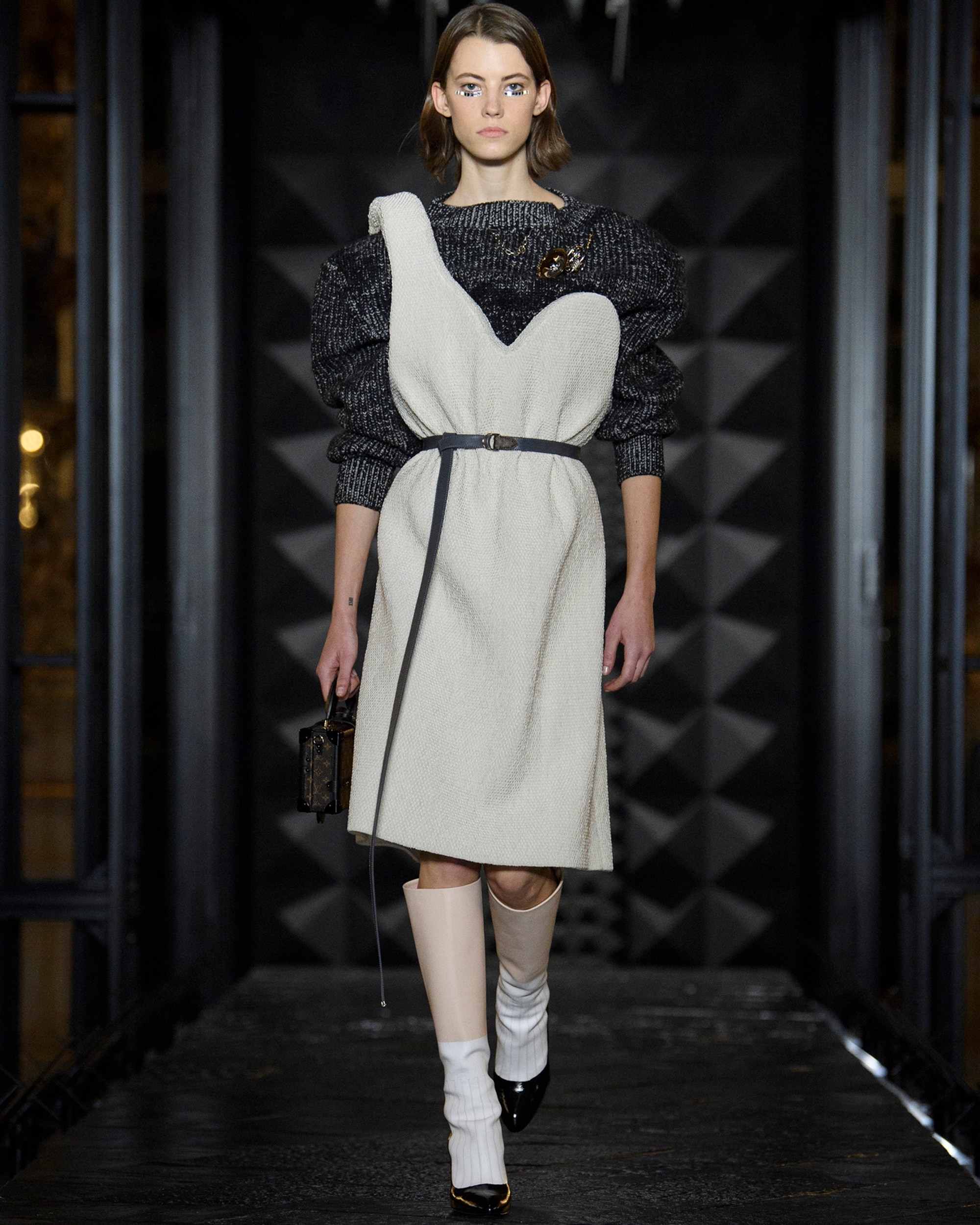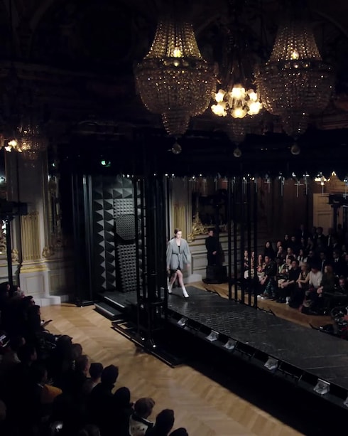 Explorando los códigos sartoriales del estilo francés, la Colección Otoño-Invierno 2023 da vida a la enigmática noción del chic parisino. Mostrando el arte de la ilusión, las botas aparecen como zapatos y los bordados intrincados como tejidos, desdibujando la línea de la percepción y la realidad, mientras que las bolsas y los accesorios emblemáticos adoptan sutilmente el tricolor de la bandera. Lleno de movimiento y flexibilidad, Nicolas Ghesquière introduce una nueva formalidad, emblemática de una firma francesa reimaginada.