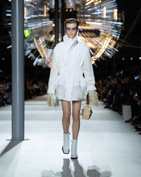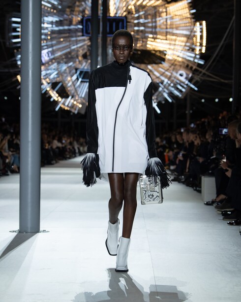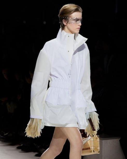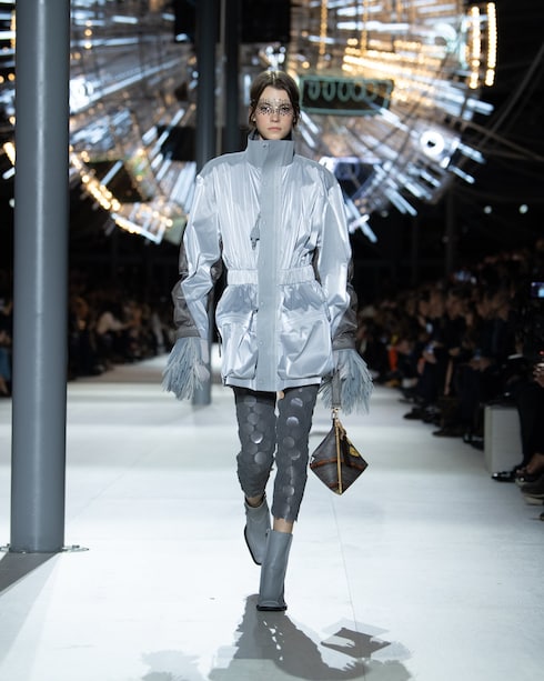 Oda a una década de creaciones audaces, la colección pionera de Nicolas Ghesquière presenta una estética matizada mediante una combinación de motivos gráficos, bordados brillantes y accesorios y bolsas vanguardistas, inspirados en los emblemas de la Maison.