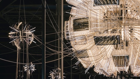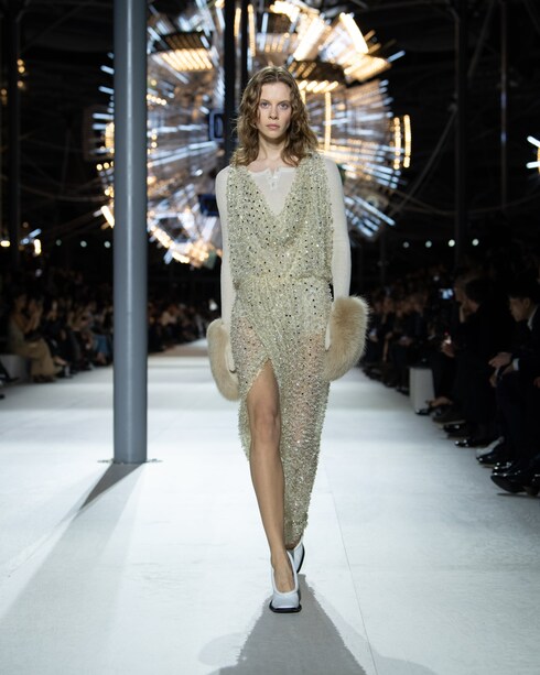 La escenografía futurista, que recuerda a un luminoso invernadero impregnado de la energía palpitante de lámparas de araña escultóricas, ha sido diseñada una vez más por el célebre artista Philippe Parreno y el diseñador de producción James Chinlund.