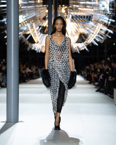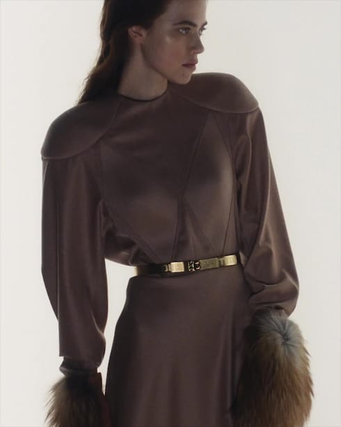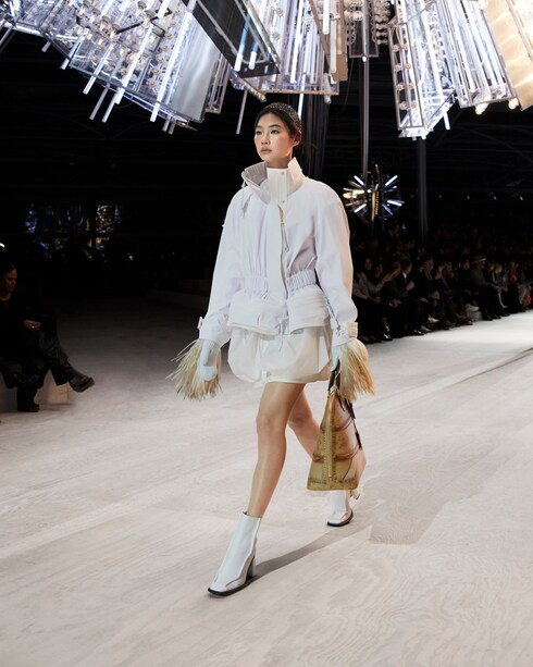 Evocando un sentimiento de nostalgia a través de sus códigos de estilo, Nicolas Ghesquière teje una nueva historia con su última colección, afirmando el audaz encanto de la silueta femenina contemporánea.