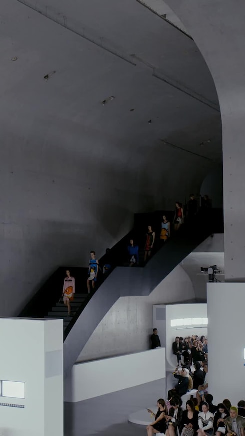 Incitando a la libre expresión entre el color y la forma, Nicolas Ghesquière desvela un guardarropa femenino lleno de contrastes, donde lo corto se enfrenta a lo largo, y un abanico de estampados ultra-gráficos yuxtapone materiales refinados - en una ilustración de la creatividad sin límites de la Maison.
