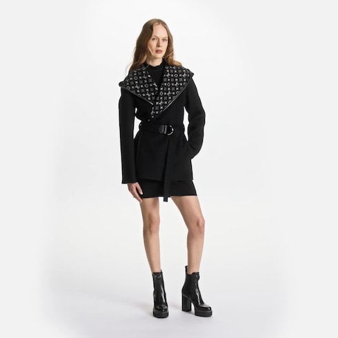 Este abrigo marinero envolvente se actualiza esta temporada con una elegante paleta de colores y un cinturón Louis Vuitton Paris que aporta un toque contemporáneo. La pieza, suave y ligera, está confeccionada en una mezcla de seda y lana con técnica de doble cara e incorpora una capucha voluminosa que brinda mayor calidez. El diseño se completa con el emblemático motivo Monograma en Jacquard en el interior.