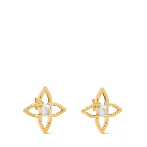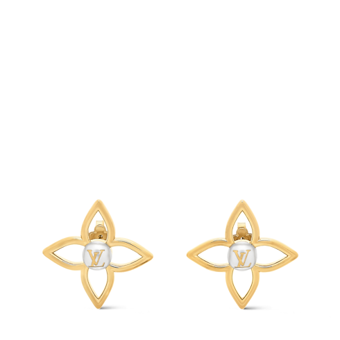 Estos elegantes aretes Pearly Flower combinan el clásico distintivo Louis Vuitton con la belleza atemporal de las perlas. Su sutil diseño presenta una flor Monograma calada en metal de color dorado alrededor de una perla de resina blanca y brillante. El modelo se realza con unas iniciales LV y es ideal para añadir un toque femenino a cualquier look.