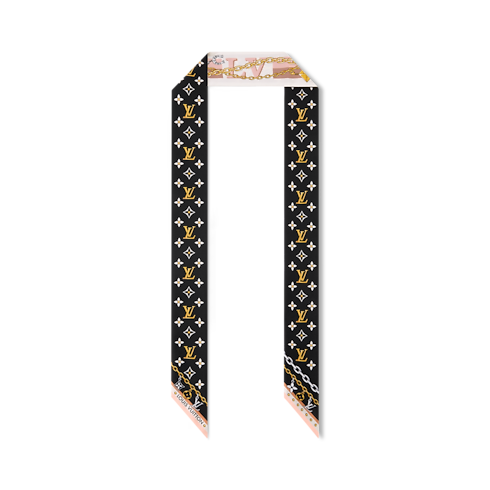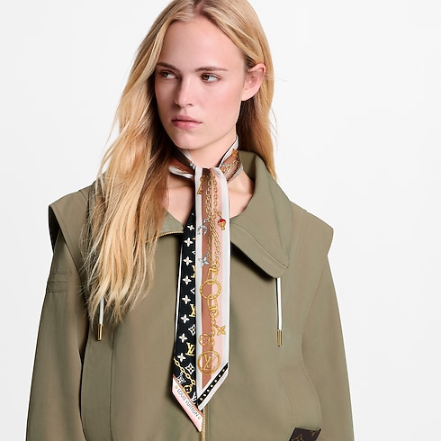Esta elegante bandana K Charms captura el espíritu de Louis Vuitton en un diseño encantador y ultra femenino. El modelo, impreso en pura seda, luce una cadena con una variedad de charms para bolsa simbólicos que evocan el motivo Monograma y la herencia viajera de la Maison. La pieza, ideal para el día a día, añade un toque sutil de elegancia a cualquier conjunto.