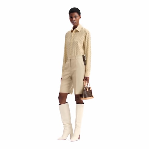 Estas elegantes bermudas están confeccionadas en una suntuosa mezcla de lana y angora toile. La pieza se realza con un elegante cierre frontal y pliegues marcados en la parte delantera y trasera de las piernas. El diseño se completa con una trabilla en Canvas Monograma oversize que aporta un toque moderno al lateral.