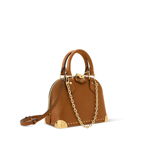 Esta edición de la bolsa Alma Trunk BB está elaborada en suave y atemporal piel de becerro. El diseño presenta relucientes piezas metálicas en color dorado, como el característico candado, esquinas inspiradas en los baúles de la Maison, y una cadena decorativa. Ideal para guardar los enseres cotidianos, este funcional y elegante modelo se completa con un bolsillo plano para objetos pequeños.