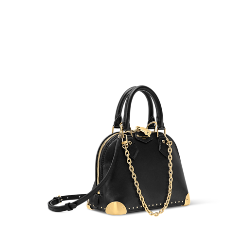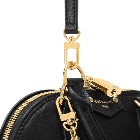 Esta edición de la bolsa Alma Trunk BB está elaborada en suave y atemporal piel de becerro. El diseño presenta relucientes piezas metálicas en color dorado, como el característico candado, esquinas inspiradas en los baúles de la Maison, y una cadena decorativa. Ideal para guardar los enseres cotidianos, este funcional y elegante modelo se completa con un bolsillo plano para objetos pequeños.