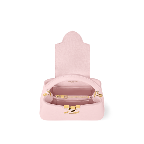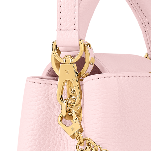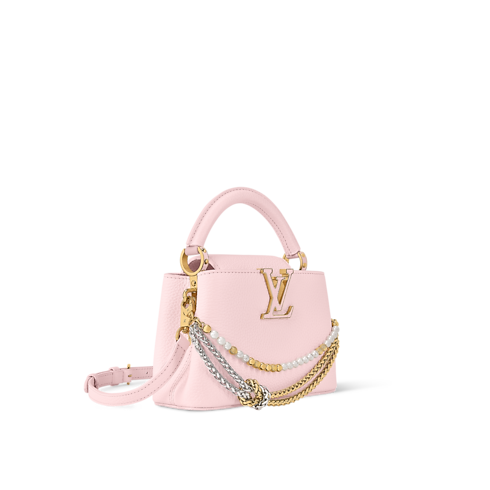 Esta llamativa bolsa Capucines Mini se reinventa está temporada para la colección Why Knot en un tono rosa Sweet. El modelo está confeccionado en piel Taurillon y luce una cadena bigalvanizada, que está inspirada en la joyería de la Maison, y que se realza con charms para bolsa con el logotipo Monograma y detalles de perlas. Este diseño se completa con una tira más larga, que le añade un toque versátil.