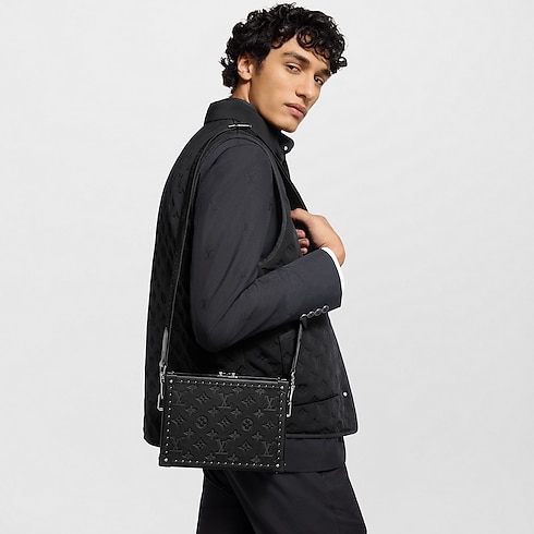 La bolsa Clutch Box en piel Monograma Shadow grabada en relieve rinde homenaje a la tradición en la fabricación de baúles de la Maison. La pieza presenta en el interior dos compartimentos plegables y un bolsillo plano y luce en el exterior ribetes en piel de color negro, remaches en tono plateado y un broche S-lock que le confieren un aire moderno. La maleta compacta de estructura rígida puede llevarse en el hombro o cruzada mediante una correa textil extraíble y ajustable.