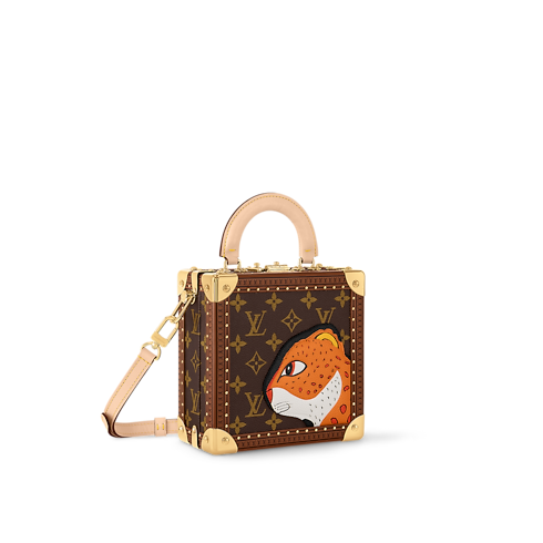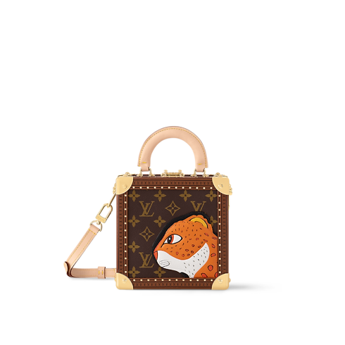 La bolsa Mini Square Trunk se actualiza como parte de la colaboración entre Nicolas Ghesquière y la reconocida artista china Sun Yitian. La pieza está confeccionada en Canvas Monograma con un forro en piel de color rosa. El modelo se adorna con un parche en piel granulada con un diseño de cabeza de leopardo.