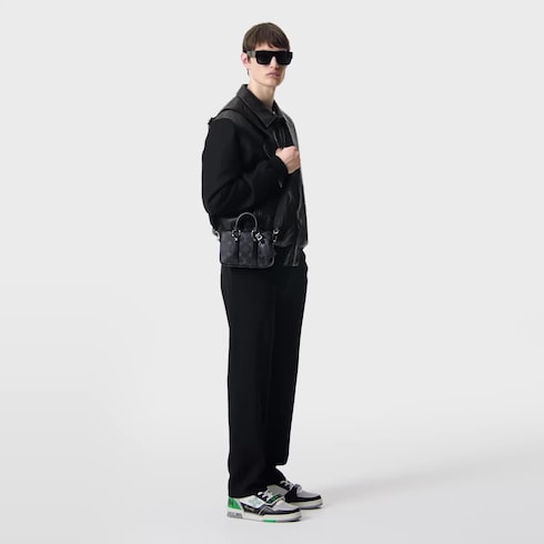 La bolsa Nano Voyage aporta un toque de estilo moderno al guardarropa del hombre de negocios. El diseño presenta todos los detalles emblemáticos del modelo de tamaño original como el cierre, la doble asa y la correa ajustable y extraíble que permite llevarlo en el hombro o cruzado. La pieza dispone de un compartimiento principal con suficiente espacio para guardar un celular y una cartera.