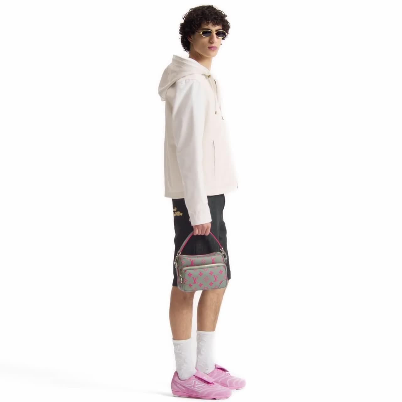 La emblemática bolsa Nil es una pieza de la década de 1980 reinterpretada por Pharrell Williams y está confeccionada en Canvas Monograma Glow. El modelo vintage luce un motivo estampado que se inspira en las luces de neón de Miami y cuenta con un compartimento principal y un bolsillo frontal con cierre. El diseño puede llevarse de múltiples maneras mediante una correa extraíble y un asa, ambas elaboradas en piel.
