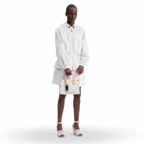 La bolsa OnTheGo PM se reinterpreta en una combinación del emblemático motivo Damier con distintivos Monograma de la Maison para la colección LV Romance. El elegante modelo está confeccionado en piel de becerro y luce un alegre charm de etiqueta identificativa con un espejo, ideal para retocar el maquillaje. Esta pieza se completa con una correa larga extraíble que permite llevarla cruzada.