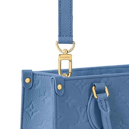 La bolsa OnTheGo PM de esta temporada luce un color azul Blue Jean. Este clásico y atemporal diseño está elaborado en característica piel Monograma Empreinte y se realza con piezas metálicas doradas. Ideal para el trabajo o fin de semana, el modelo permite guardar objetos del día a día e incorpora una correa extraíble que permite llevarlo de múltiples maneras.
