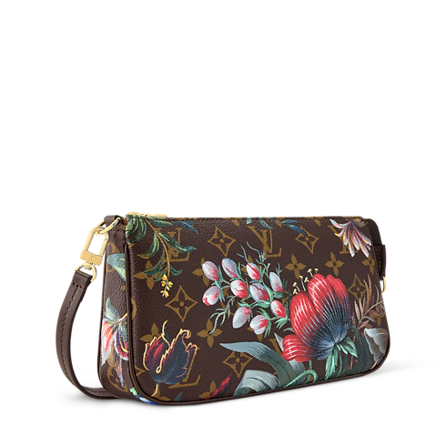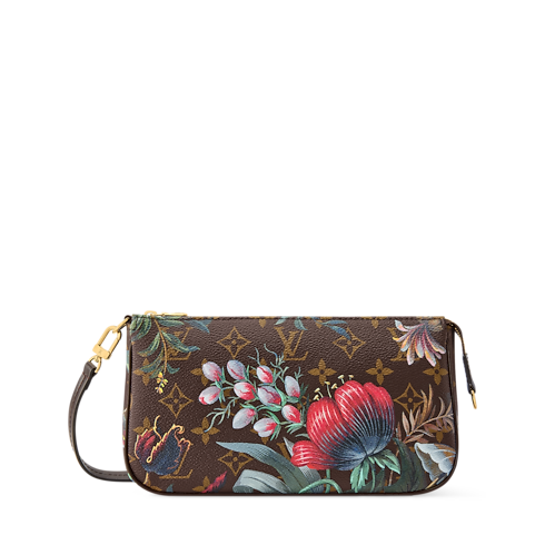 Esta edición Monograma Eden de la bolsa Pochette Accessories luce un estilo elegante y refinado con exclusivos motivos florales. El modelo compacto está confeccionado en emblemático Canvas Monograma con detalles en suave piel de becerro y piezas metálicas de color dorado con acabado pulido. En el interior presenta un amplio compartimento ideal para los artículos esenciales del día a día, así como un bolsillo plano para guardar tarjetas o recibos.