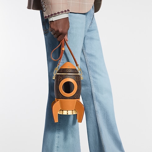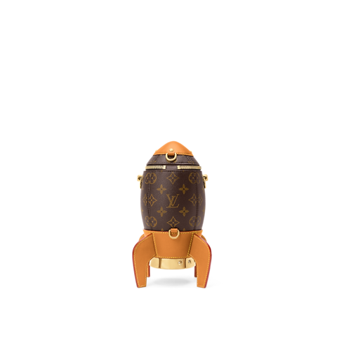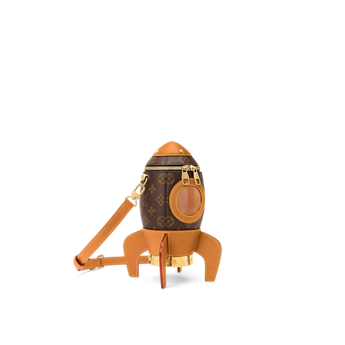 Esta bolsa Rocket Shuttle en Canvas Monograma revestido eleva el arte de viajar. El diseño incorpora una abertura alusiva a la ojiva de los cohetes y un interior de piel. Este modelo presenta suficiente espacio para dos teléfonos y una cartera pequeña, así como una ventana que permite ver la parte interna.