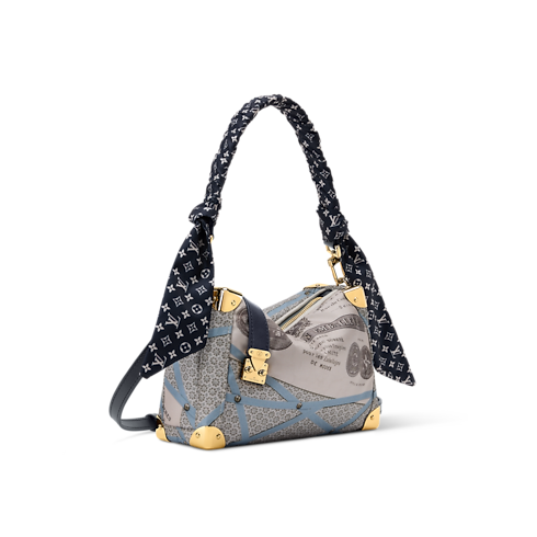 Esta exclusiva reinterpretación de la bolsa Side Trunk MM forma parte de la animación Inside LV. El diseño presenta múltiples detalles textiles a contraste inspirados en el interior de los históricos baúles de la Maison, así como un detalle de pañuelo con el patrón Monograma. En tributo al legado viajero de Louis Vuitton, este modelo se realza con unas esquinas doradas y el característico cierre S-Lock.