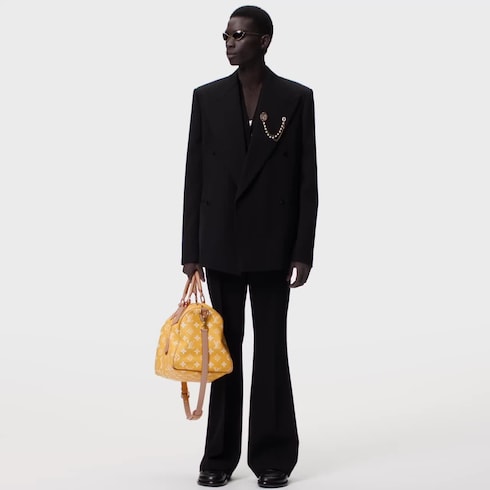 Esta versión de la bolsa Speedy P9 40 con correa del director creativo Pharrell Williams está confeccionada en flexible piel de becerro granulada que le confiere una textura ultrasuave. El modelo luce el motivo Monograma estampado mediante una técnica de serigrafía de calidad superior que reproduce el efecto del Canvas homónimo. La pieza presenta un forro completo en suntuosa piel de cordero.