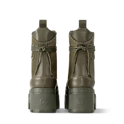 Esta bota de desierto Laureate reinterpreta un emblemático modelo de Louis Vuitton. La pieza está confeccionada en tela e incorpora ribetes y agujetas en piel, así como el logotipo LV oversize en un lateral. Este diseño presenta su característica y ligera plataforma decorada con unas pequeñas iniciales LV en alusión a los históricos baúles de la Maison.