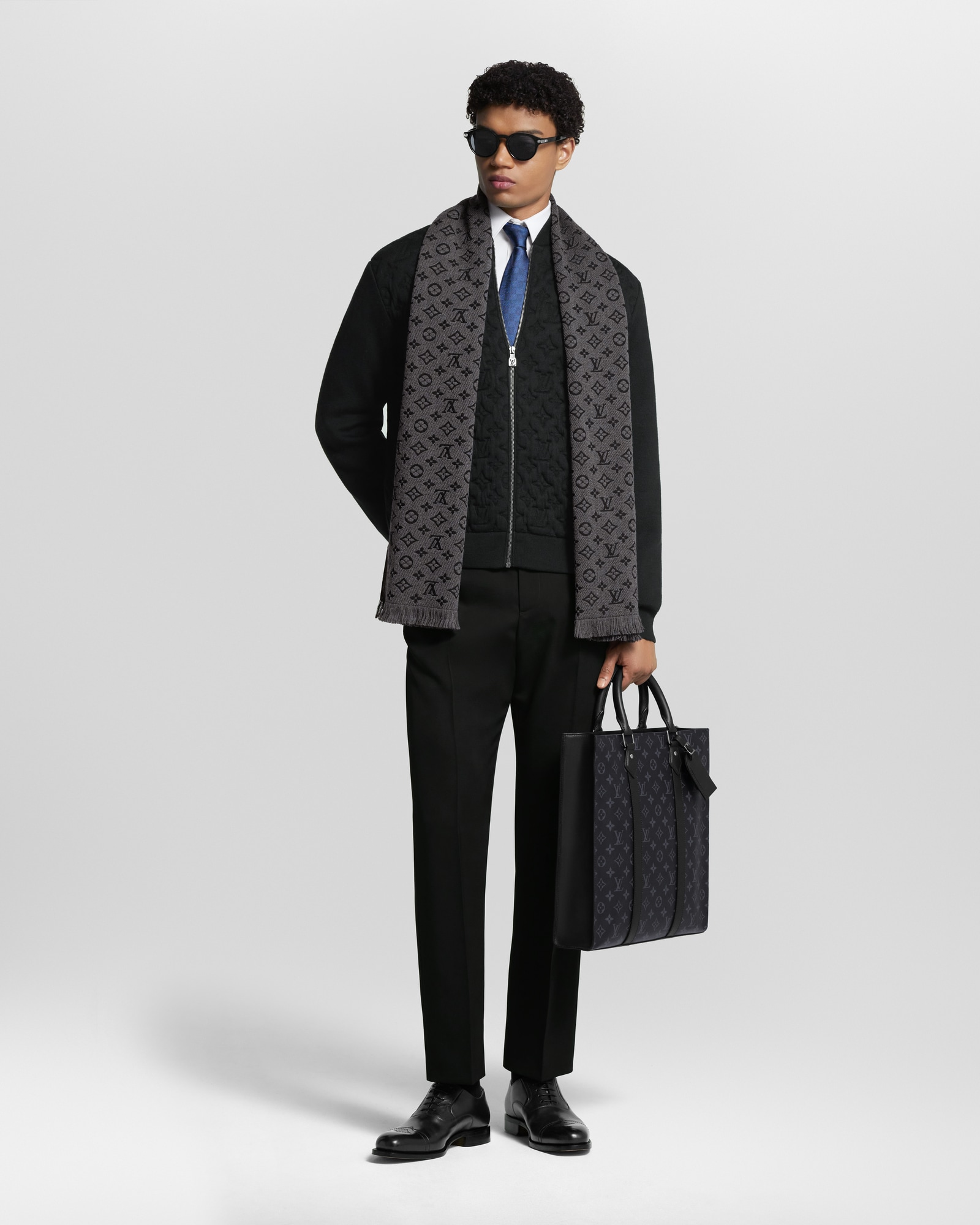 La elegante bufanda Monograma Classic, confeccionada en lana, se adorna con un discreto tejido del emblemático motivo Monograma de Louis Vuitton. Este accesorio imprescindible presenta un lado cálido, mientras que el otro es suave y sedoso. Se completa con un acabado en flecos en los extremos.