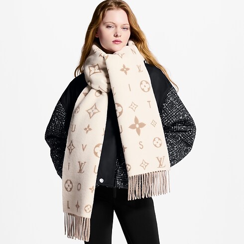 La clásica bufanda Reykjavik 2.0 de Louis Vuitton se reinterpreta con un funcional diseño de estilo contemporáneo. La pieza está confeccionada en cachemir afelpado y luce un original motivo que combina flores Monograma y las iniciales LV con letras del nombre de la Maison. Este elegante modelo de amplias dimensiones se puede llevar alrededor del cuello o como un moderno pasamontañas.