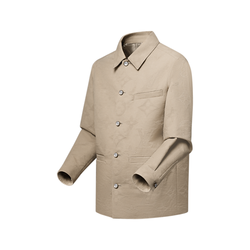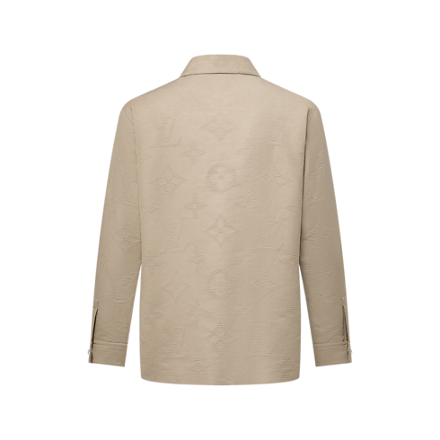 Esta elegante sobrecamisa luce el motivo Safari Monograma de la colección Primavera-Verano 2025 creado mediante un bordado tono sobre tono con un efecto tridimensional. El modelo confeccionado en algodón de color gris se realza con botones nacarados y tres bolsillos ribeteados. Esta pieza puede llevarse con el pantalón a juego para crear un conjunto elegante y relajado.