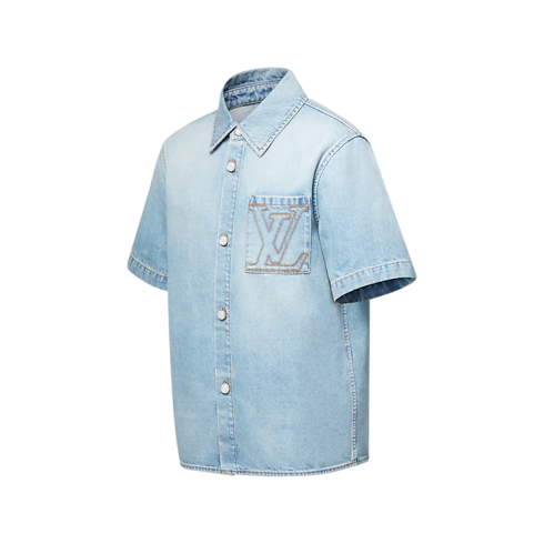 Esta camisa de manga corta está confeccionada en exquisito tejido denim japonés que pone de manifiesto el legado magistral de Louis Vuitton. El modelo luce un efecto lavado a la piedra decorado con pespuntes en tono café y un logotipo LV bordado en el bolsillo del pecho. Fácil de combinar, la prenda se completa con un parche LV de nobuk en la parte posterior y botones nacarados.