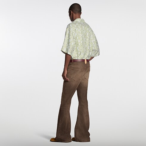 Esta camisa de manga corta, confeccionada en seda orgánica, se realza con el motivo estampado LV Maze del desfile Primavera-Verano 2026. El modelo presenta el distintivo Louis Vuitton en letras gráficas de color verde y azul sobre un fondo blanco, diseño inspirado en los carteles pintados a mano durante el viaje de la temporada a la India. La prenda puede combinarse con los shorts a juego para crear un conjunto relajado y elegante.