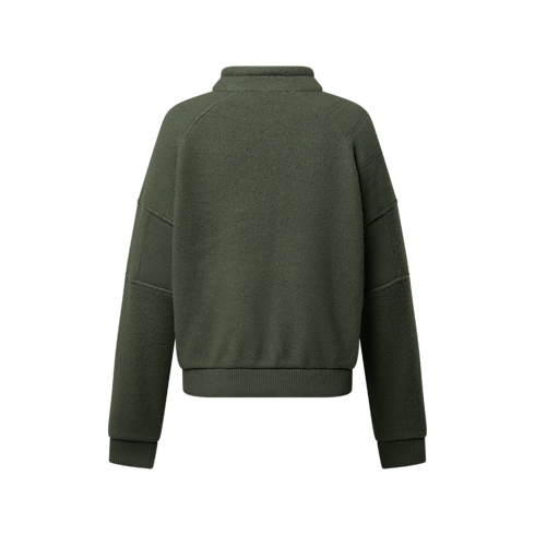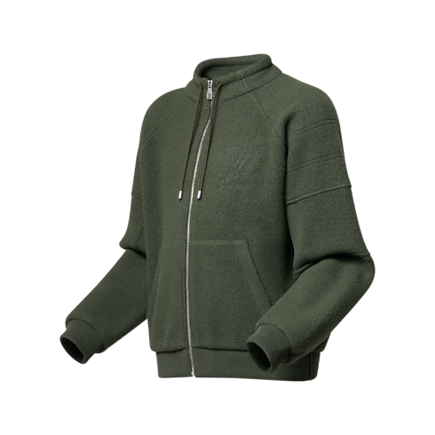 Esta elegante chamarra de estilo deportivo está confeccionada en suave lana texturizada en un clásico tono olivo. El modelo cuenta con un cuello alto con cordón, mangas raglán con codos en punto elástico y se adorna con pespuntes que producen un efecto acolchado y un parche LV bordado en la parte frontal. Esta pieza ideal para llevar durante los viajes y se puede combinar con el pantalón a juego.