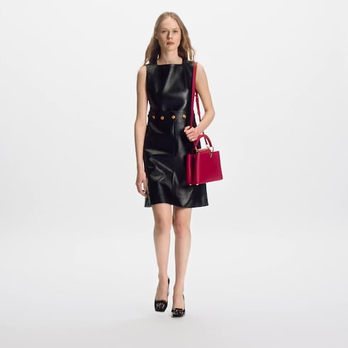 Esta clásica bolsa de mano Capucines BB, presentada en 2013, está confeccionada en piel Taurillon de plena flor. Luce elementos característicos de la Maison, como las iniciales LV revestidas de piel, los intrincados soportes de asa inspirados en los baúles históricos y una distintiva solapa con una flor Monograma. Esta pieza atemporal y elegante, que lleva el nombre de la calle parisina donde Louis Vuitton abrió la primera tienda en 1854, puede llevarse en la mano o cruzada gracias a la correa extraíble.