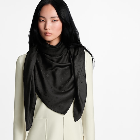 Este chal All My LV luce un diseño atemporal y evoca la elegante artesanía de la Maison. El modelo, confeccionado en tejido Jacquard en una exquisita mezcla de lana y seda, combina el emblemático motivo Monograma con las letras del nombre de la Maison. La original y versátil pieza puede combinarse con un vestido de noche o usarse como bufando o top anudado.