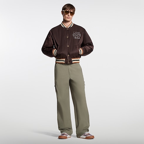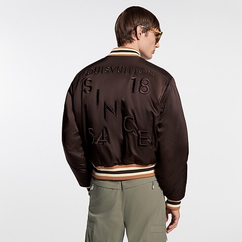 Esta elegante chamarra bomber reinterpreta una silueta clásica en algodón técnico sedoso de intensos tonos café. La pieza luce el distintivo LV Legacy en cuentas bordadas en el pecho, así como logotipos brillantes de efecto tridimensional a lo largo de la espalda. El modelo incorpora botones a presión tipo ojo de tigre y un forro acolchado Malletage que evoca los interiores de los emblemáticos baúles de la Maison.
