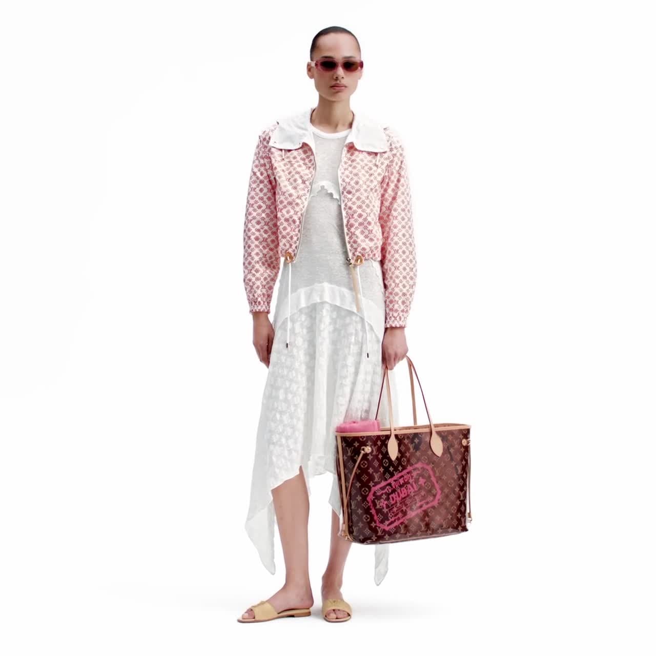 Esta chamarra confeccionada en nailon ligero luce el novedoso motivo integral Monograma de efecto 3D característico de la temporada. La pieza presenta un corte cuadrado y elementos de estilo deportivo como una capucha holgada, puños elásticos y cintura con cordón. El modelo se completa con un tirador con flecos elaborado en piel.