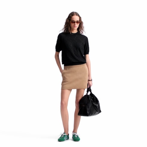 Este top de punto está confeccionado en exquisita mezcla de lana. El modelo se realza con el motivo Monograma Mahina de la colección Flight Mode en un delicado calado y luce bajos acanalados. El diseño presenta un corte ajustado y se complementa con un femenino efecto abullonado en las mangas cortas.