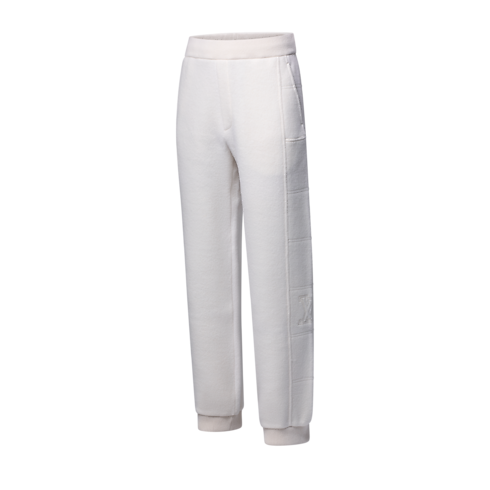 Este elegante pantalón confeccionado en suave lana texturizada es ideal para llevar durante los viajes o para los días de descanso. El cómodo modelo luce paneles de estilo deportivo con pespuntes que producen un efecto acolchado y un parche LV bordado en el lado izquierdo. La pieza se completa con una cintura y puños en punto elástico y se puede combinar con la chamarra a juego.