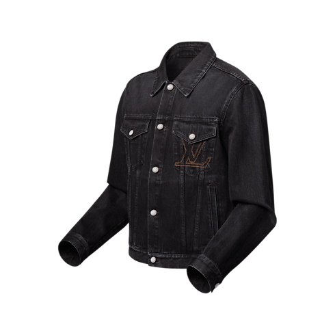 Esta chamarra Trucker presenta un diseño confeccionado en denim japonés lavado a la piedra, ideal para combinar con los atuendos del día a día. La pieza se adorna con un bolsillo con las iniciales LV bordadas en hilo color amarillo y una etiqueta en nubuck Damier con las iniciales LV grabadas en relieve en la parte posterior. Este modelo imprescindible se completa con botones nacarados.
