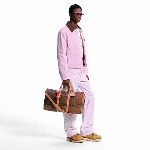 Esta chamarra con cierre de estilo utilitario es fruto de la colaboración entre Pharrell y Nigo para el desfile Otoño-Invierno 2025. El diseño presenta un color rosa flor de cerezo que recuerda la herencia japonesa de Nigo y un ligero forro acolchado. La prenda luce un cuello en piel de acabado acanalado con efecto pana, una etiqueta en piel con el distintivo «Marque L.Vuitton Déposée» y un botón a presión anacarado.