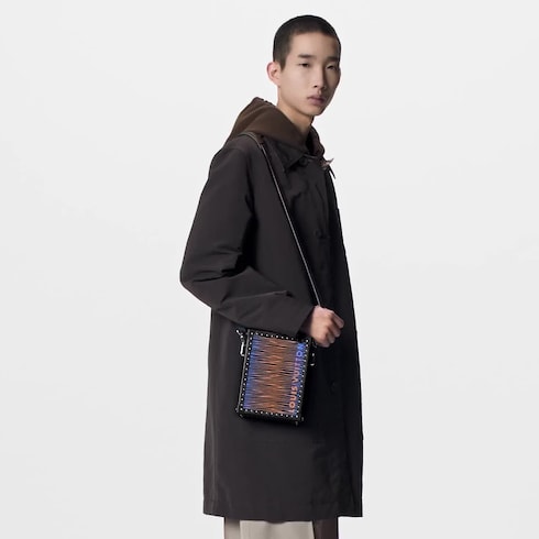 El clutch Box se reinterpreta para la colleción para hombre Otoño-Invierno 2023. La pieza presenta una estructura resistente en un novedoso formato vertical. Este diseño es el nuevo modelo rígido imprescindible de la Maison.