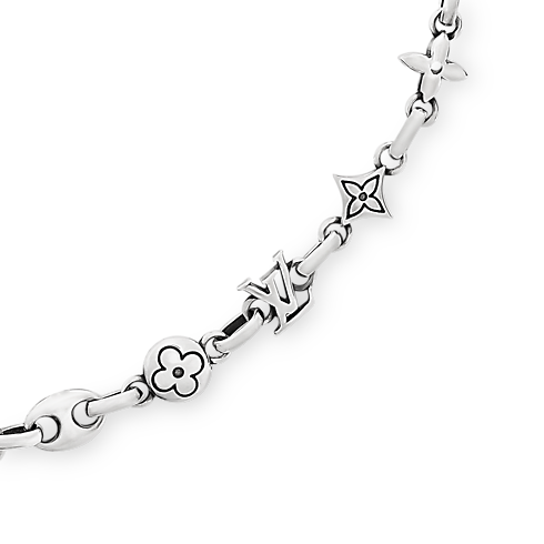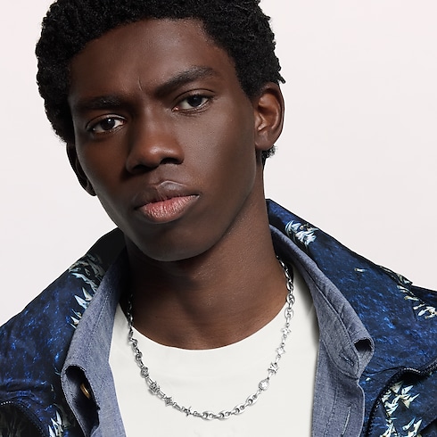 El collar LV Sailor luce una armoniosa mezcla de iniciales LV, flores Monograma y eslabones inspirados en las cadenas marineras. El modelo celebra la tradición viajera y los detalles náuticos de la colección de Louis Vuitton. Perfecta para usarla todos los días, la pieza se completa con un cierre de pinza que permite ajustar la longitud.