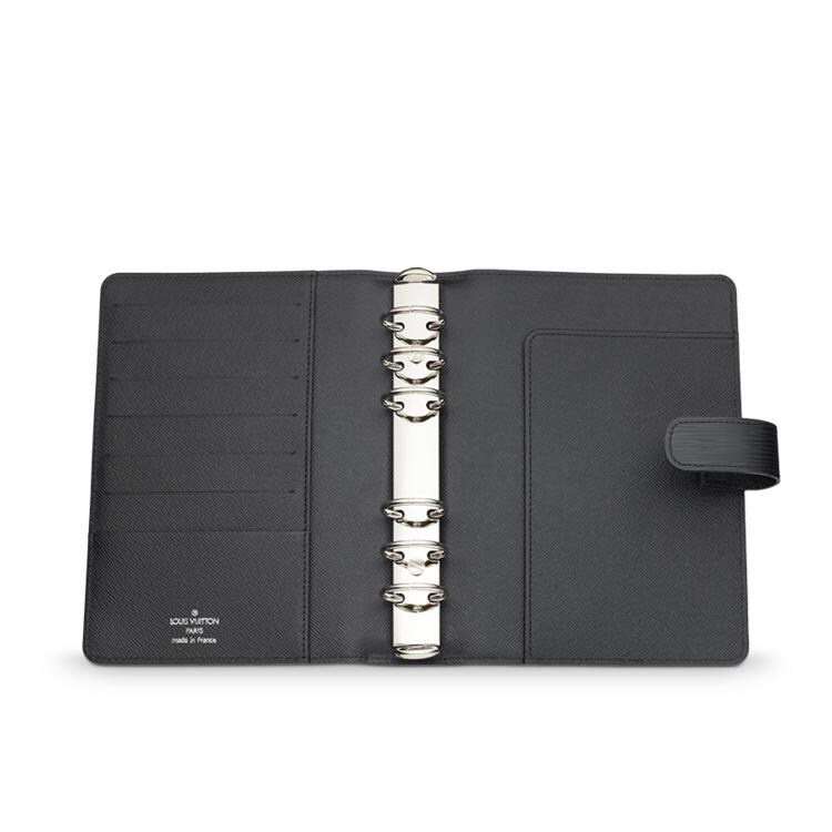 Esta funcional funda de agenda en piel Epi incluye seis ranuras para tarjetas de crédito y dos compartimentos interiores.